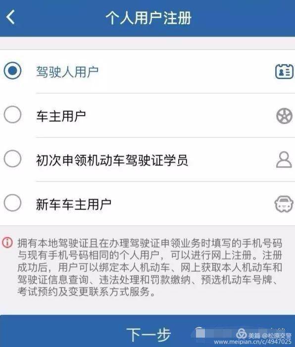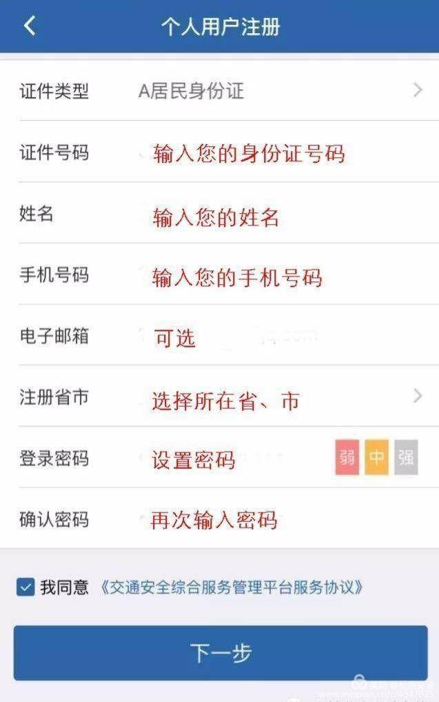 2.在注册页面中输入所需要的相关信息后点击下一步