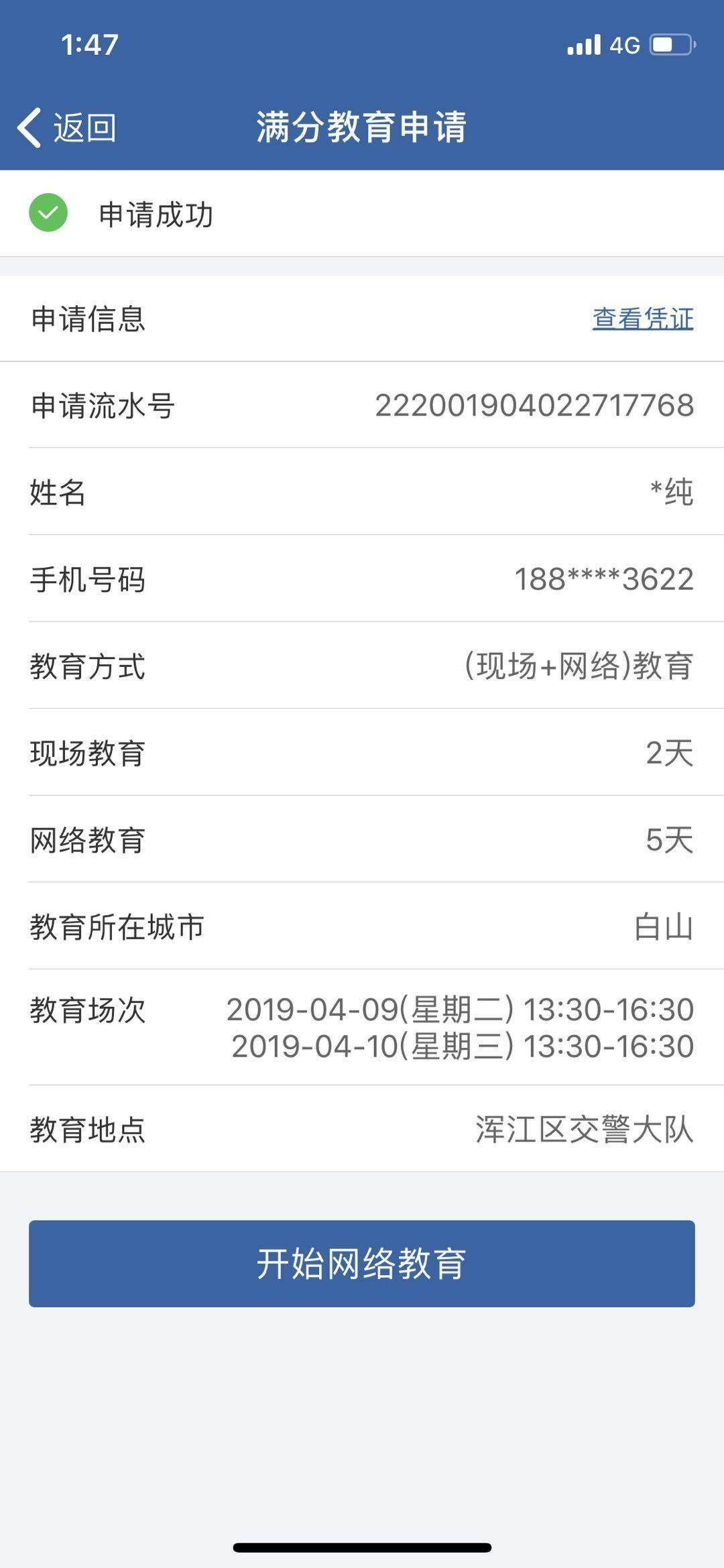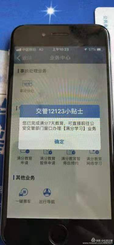 7天满分教育完成后收到系统提示信息,即可办理预约满分考试。