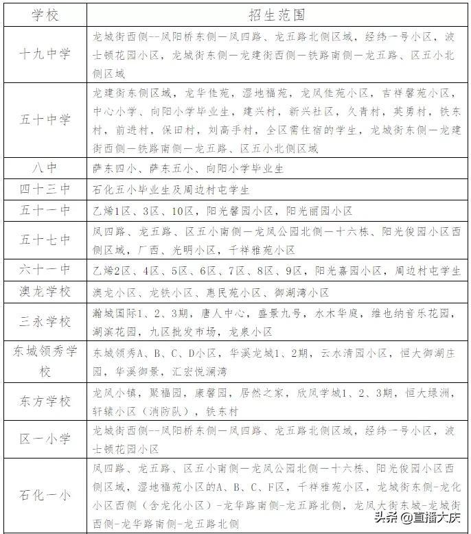 《龙凤区2021-2022学年度中小学校学区划分及招生工作方案》