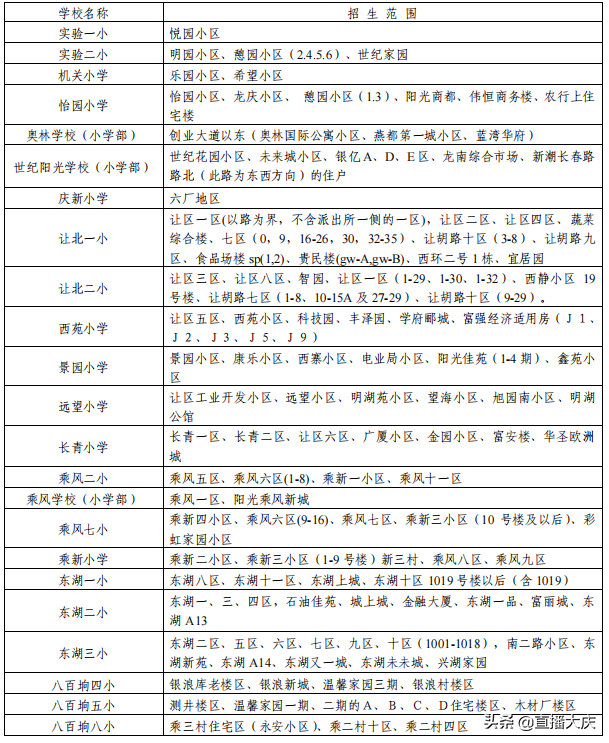 《让胡路区2021-2022学年度学区划分及新生入学办法》