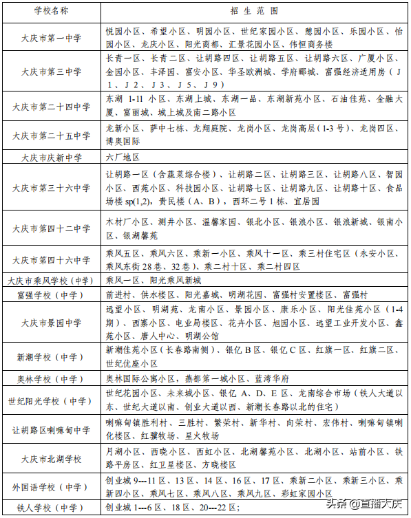7.从2023年秋季入学开始,将对大庆一中附属实验一小、大庆一中附属实验二小和大庆一中附属机关小学购房及落户时间进行调整,要求购房及落户时间到入学当年6月30日应满一年。其他学校继续执行原要求。如有新调整,将在新闻媒体进行公告。