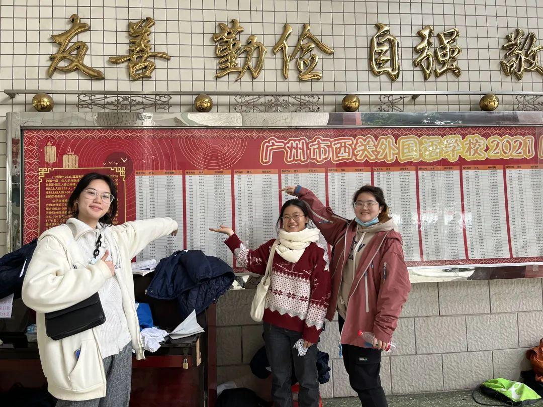 01、回归母校看高考喜报的叶芷彤同学(最左)