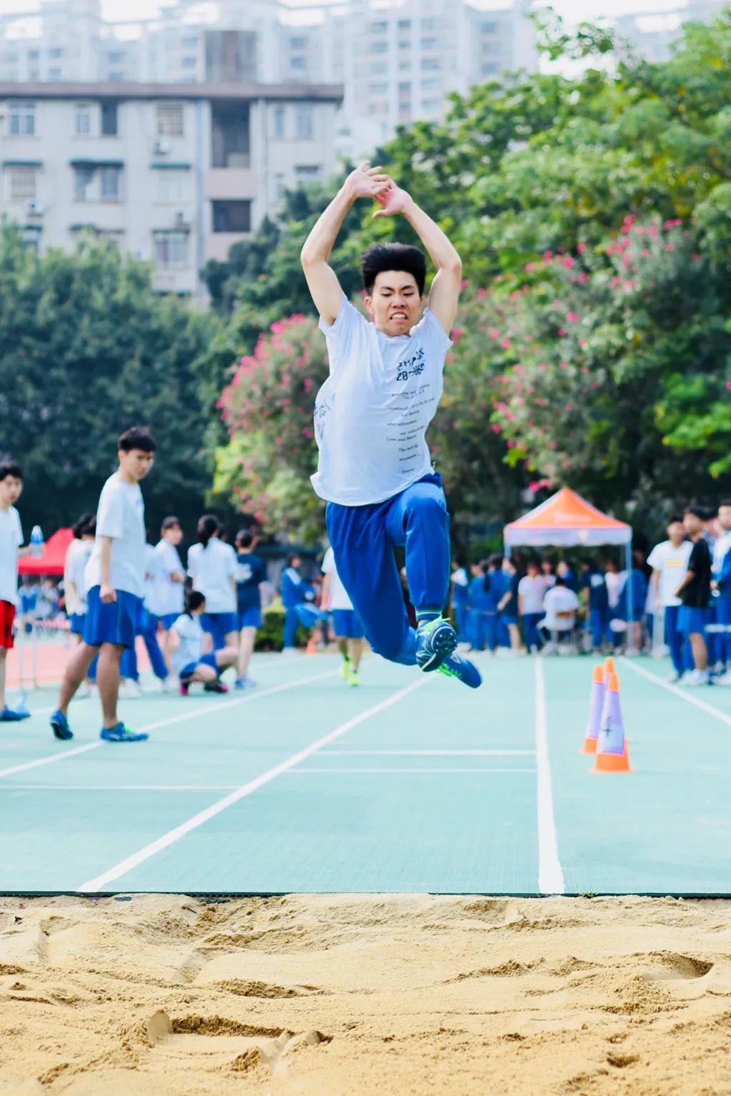 校运会上挑战更高、更快、更远,展现西外学子精神。