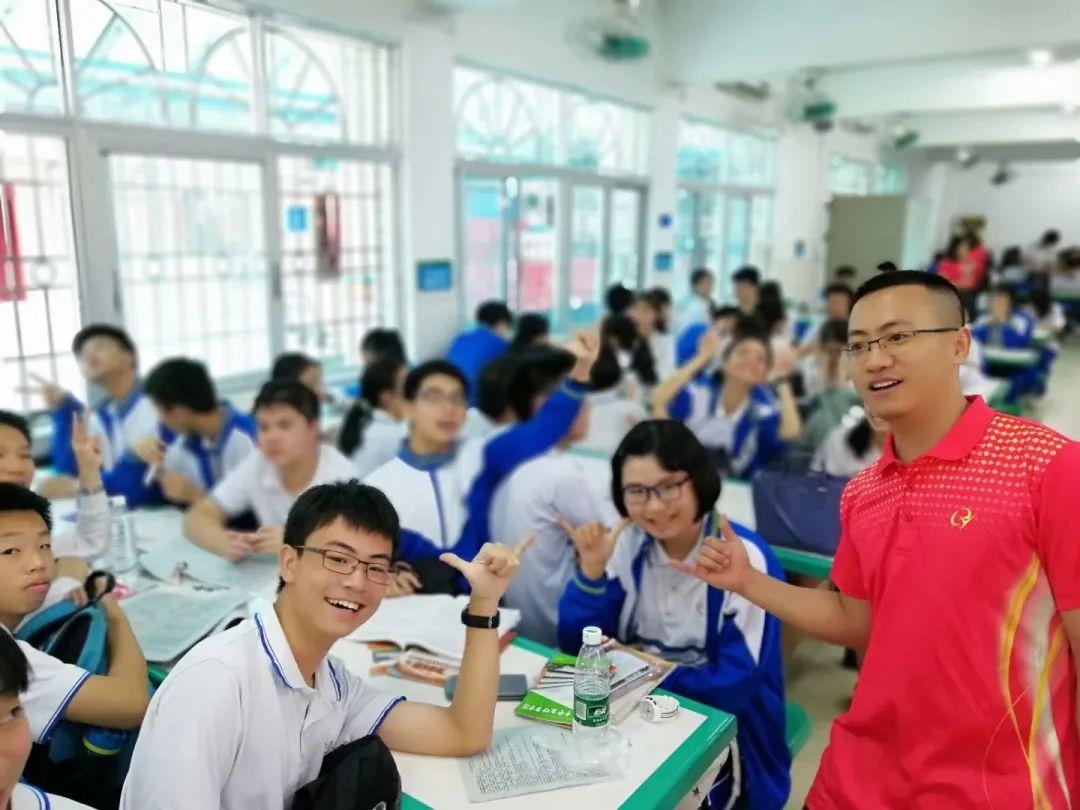 02、中考时自信的黄鸿宇(最右为陪伴他初高中六年成长的班主任邓长春老师)
