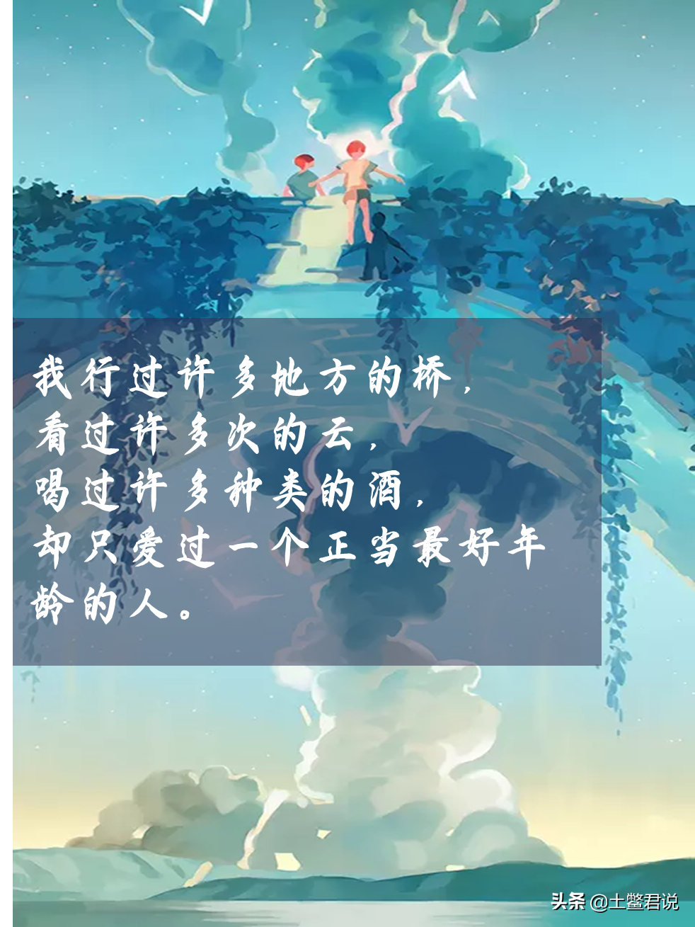 他说:“我行过许多地方的桥,看过许多次的云,喝过许多种类的酒,却只爱过一个正当最好年龄的人。”
