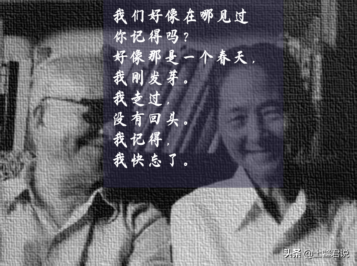 相片中的两人相视而笑,