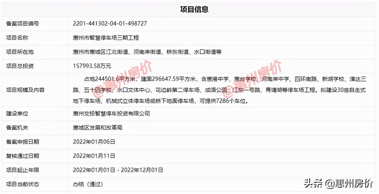 近期,惠州市智慧停车场三期工程正式通过惠城区发展和改革局审核备案,总投资金额约15.8亿元!