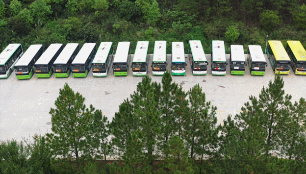 司机将车辆整齐停放在考场附近,等候接送考生。 ↓↓