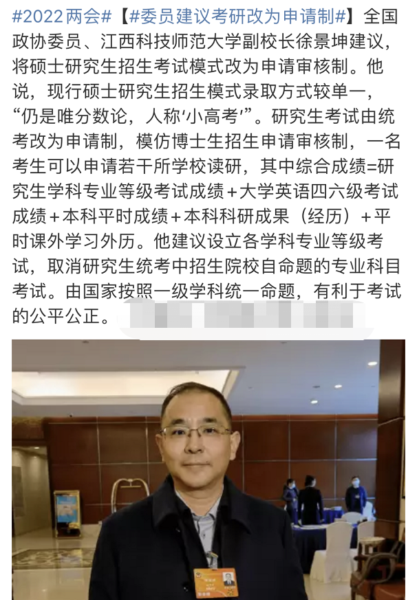 有人建议研究生考试改为申请制,可以让研究生考试难度大大降低