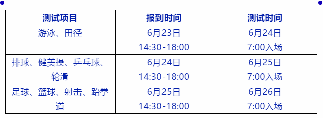 2、考生于测试当日上午7:00在指定地点集合有序入场。