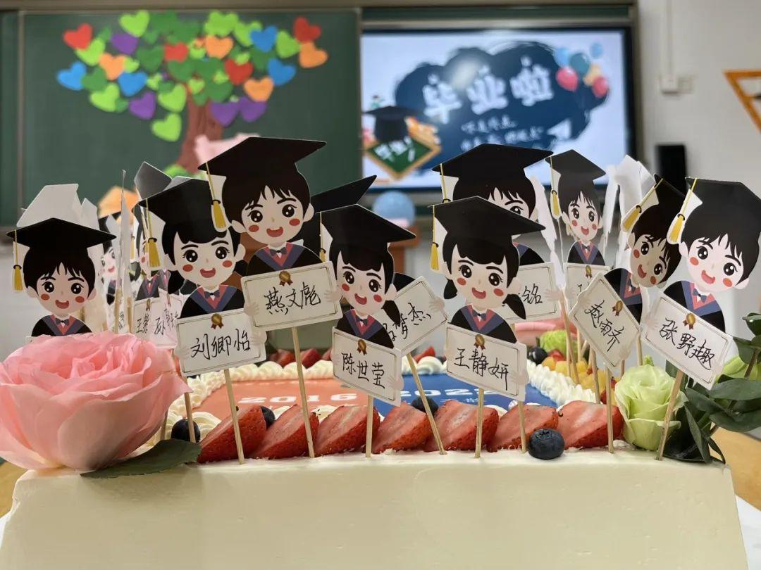 校为毕业班的学生们精心设计并准备了象征着“甜蜜一家人”的蛋糕和精致的毕业礼物。