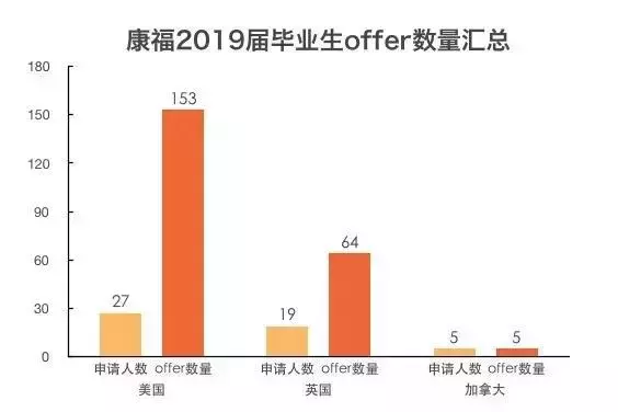 本年度申请已经落下帷幕,截止至今日,康福国际2019届36名毕业生共收到来自美国Top80、英国Top20和加拿大Top3大学的offer223封。