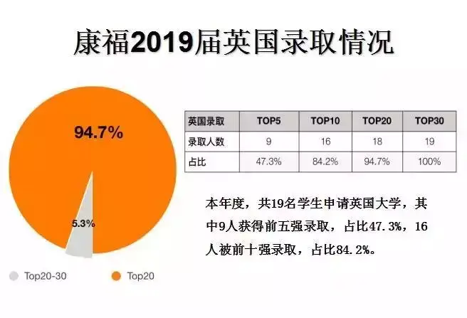 英国方向申请学生19名,16人获得前十强录取,占比达到84.2%,100%进入前三十强。