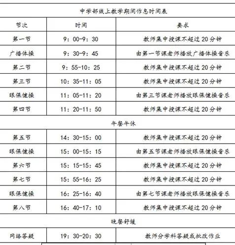 四至九年级以教学周为单位,编制详细的线上教学计划和内容丰富的课程表,课堂上实行班主任和科任老师“双师管理制”以及“任课教师负责制”,确保学生适应教师,教师熟悉学生,共同营造和谐、稳定的线上教学氛围。