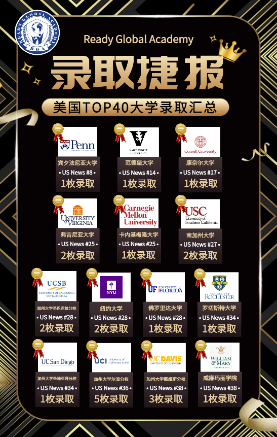 截止至4月25日,RGA 2022届毕业生TOP40大学录取汇总