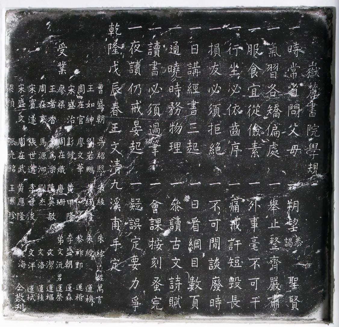 “时常省问父母,朔望恭谒圣贤;气习各矫偏处,举止整齐严肃……”岳麓书院讲堂墙壁上镶嵌着的岳麓书院学规,全文108字,为清乾隆年间岳麓书院山长王文清制定。在岳麓书院每年9月举行的新生入学礼上,这篇学规是全体新生集体朗读的内容,也成为湖南大学学生基本行为规范,写在湖南大学学生守则第一页。