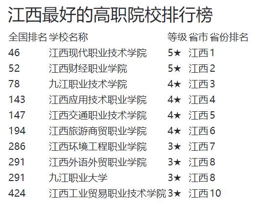 版权声明:我们致力于保护作者版权,注重分享,被刊用文章【江西有哪些好的专科学校(江西最好的高职院校排行榜)】因无法核实真实出处,未能及时与作者取得联系,或有版权异议的,请联系管理员,我们会立即处理! 部分文章是来自自研大数据AI进行生成,内容摘自(百度百科,百度知道,头条百科,中国民法典,刑法,牛津词典,新华词典,汉语词典,国家院校,科普平台)等数据,内容仅供学习参考,不准确地方联系删除处理!;