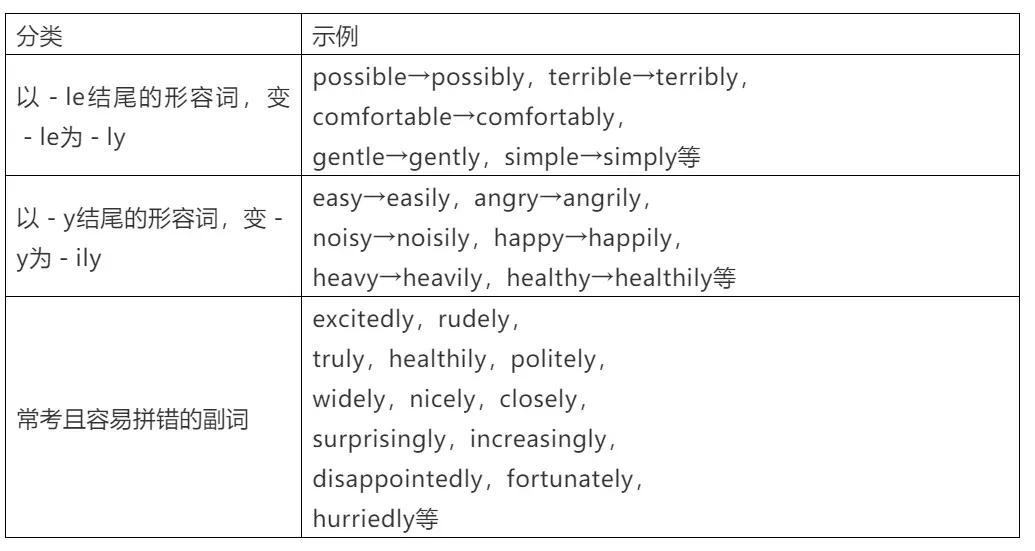 "le"结尾e改y, 高中阶段只有whole→wholly是例外。