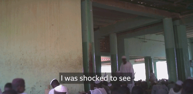 Al-Hamdani在苏丹最大,最著名的Khalwa卧底时,拍下了一名男童,因为上课顶撞了老师,就被抽打30鞭子的场景。