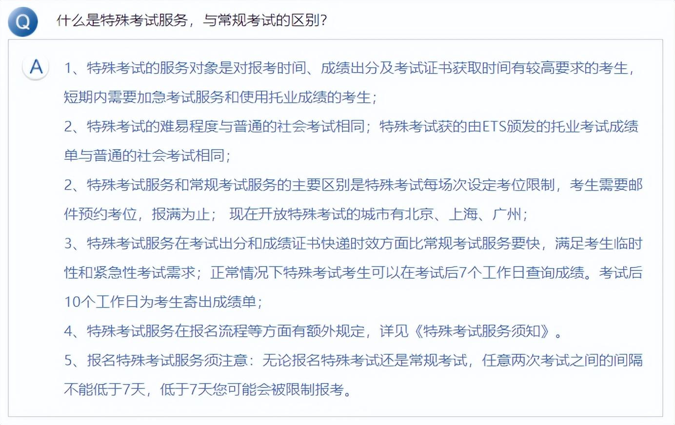 上图还提到听力阅读特殊考试,官方解释如下图,大白话就是:可以加急出成绩和证书。