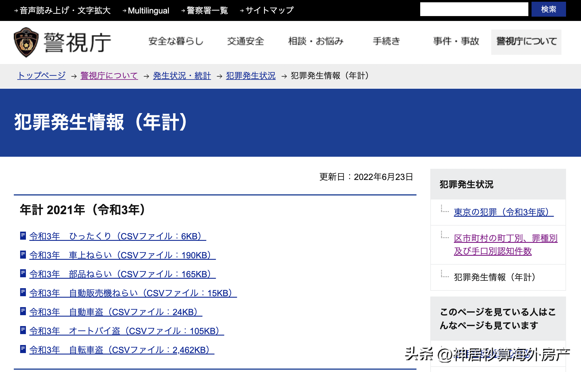 好在日本警视厅每月都会在站务网上公开在东京都内实际发生、各厅侦办的犯罪案件,并且按区域和犯罪种类总结成图表。从已公布的数据来看,即便是相邻的区之间,案发率也有很大的差异。