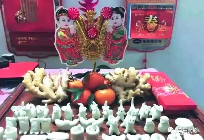 “冬至大如年”,当夜幕降临的时候,家家户户都会在厅堂点上红蜡烛,在祖先神位前的圆竹匾里放上插着“三春”(福禄寿纸花)的红福橘,用红纸封着的十双筷子,一排生姜,一块板塘来供奉祖先,寓意着全家团圆美满兴旺,生活甜蜜。