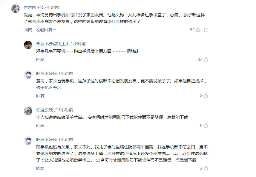9岁女儿要被送进手术室了,父亲还不忘拍照发朋友圈晒晒,这种思想着实让人难以理解,心也太大了吧?