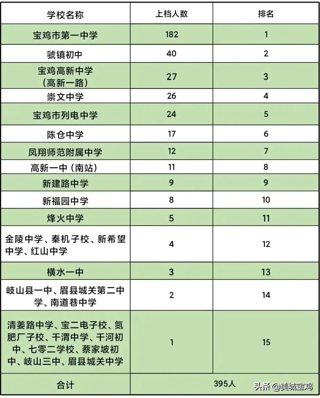随着2022年宝鸡各县区中考最低参考分数线发布,宝鸡第一名校中学达到录取分数线的考生名单也正式公布,其中这十五所初中分布最多。
