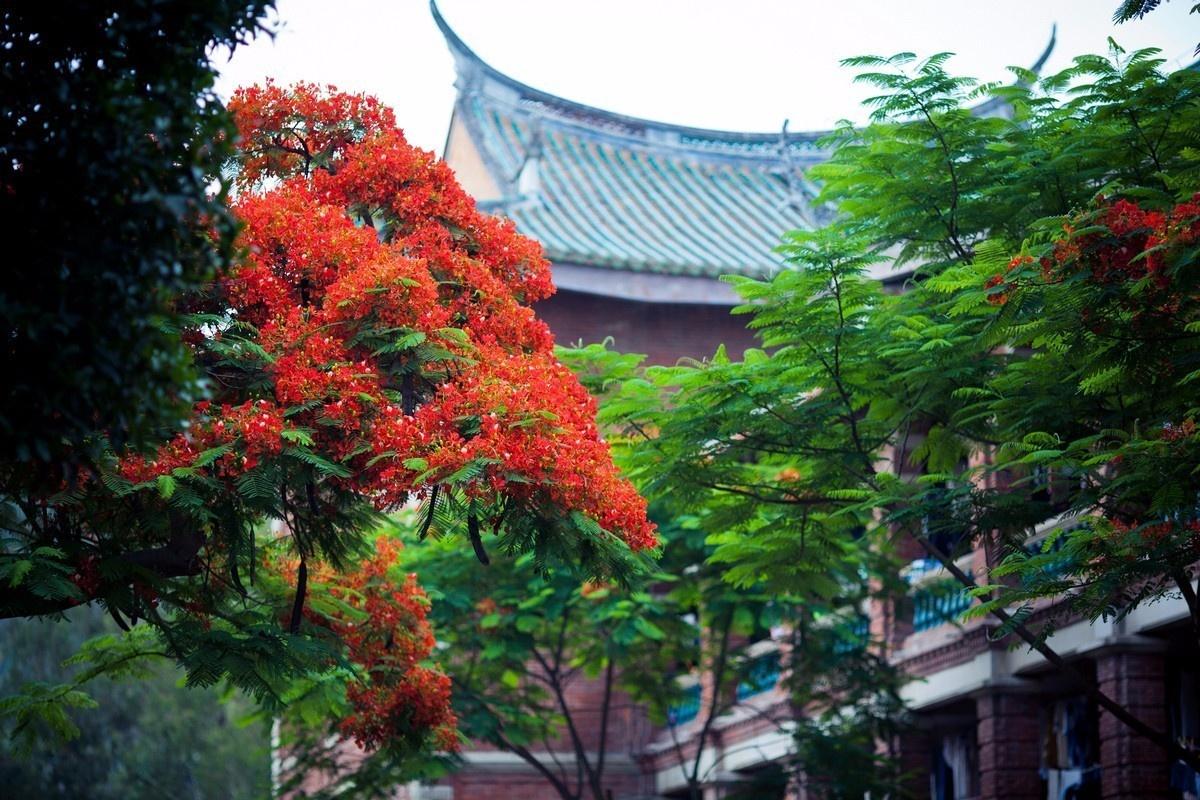 凤凰花是厦大的校花,一年开两季。六月开花送走毕业的学长、学姐,九月开花迎来开学的师弟师妹。