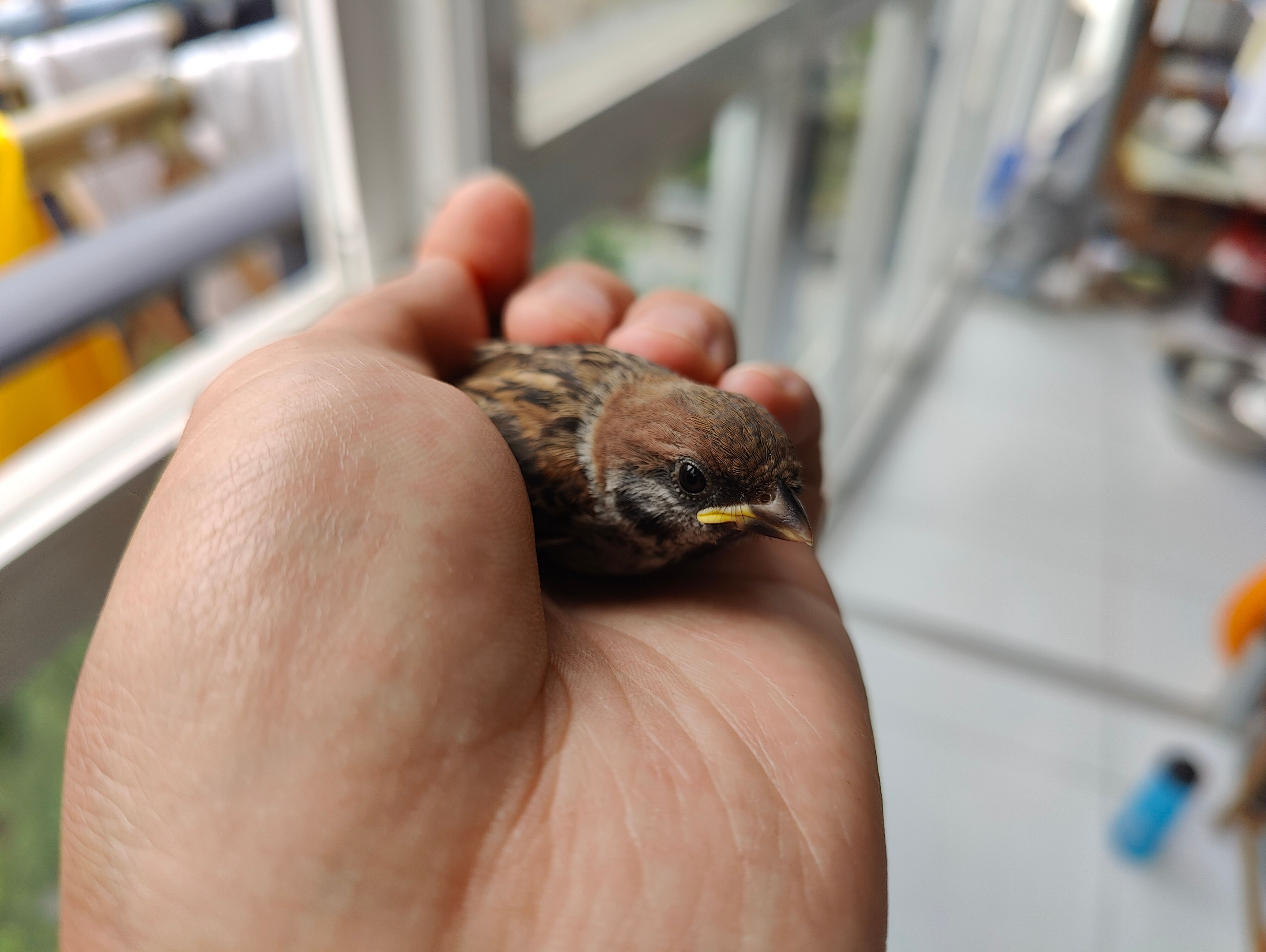 家里落了一只小麻雀,被我逮住了,拍完照再放飞。