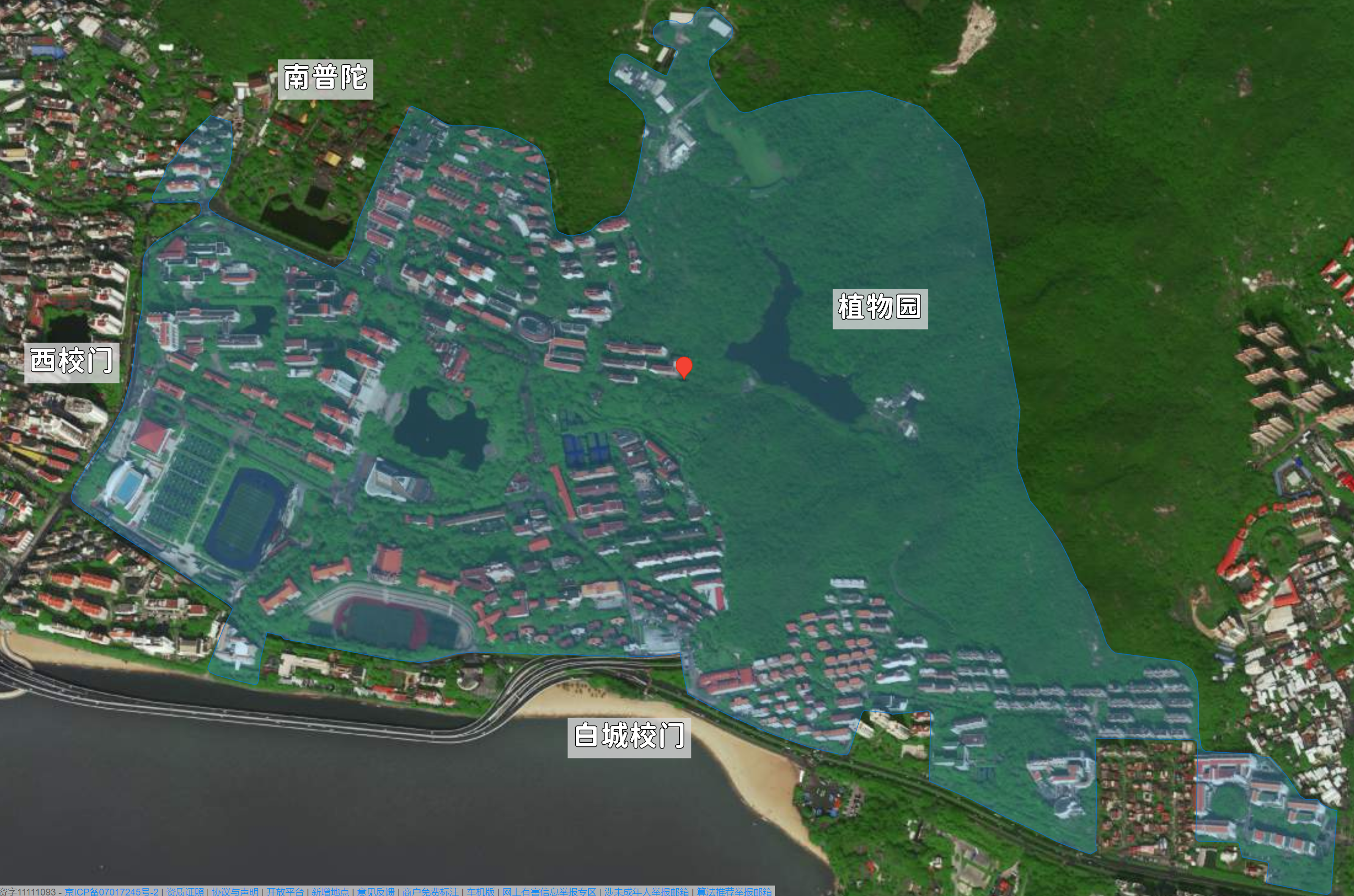 北大本部又称燕园,包括淑春园、勺园、朗润园、镜春园、鸣鹤园、蔚秀园、畅春园、承泽园等,在明清两代是皇家园林,数百年来,其基本格局与神韵依然存在。这里不仅有亭台楼阁等古典建筑,而且山环水抱,湖泊相连,堤岛穿插,风景宜人;校园内古木参天,绿树成荫,四季常青,鸟语花香,园林景色步移景异。