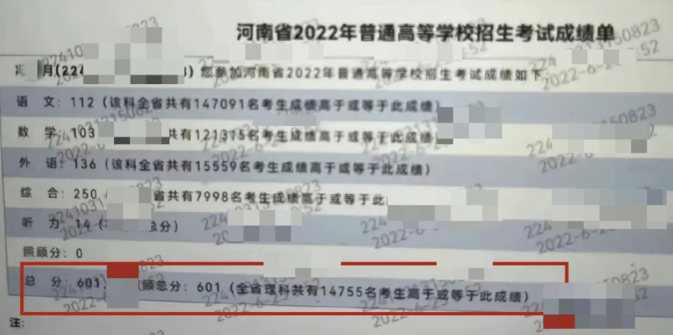 经历过的人一定懂,从农村土瓦房里考出601这个分数,有多么多么不容易。