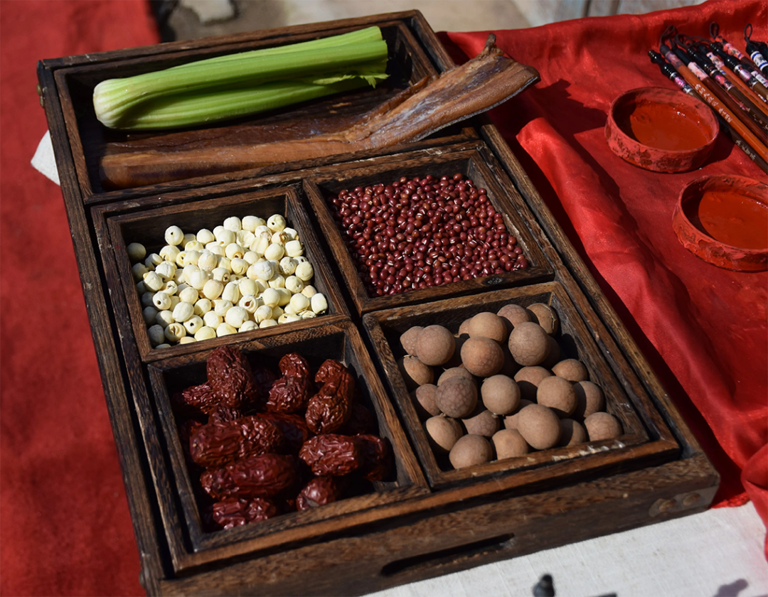 除了束脩,条件好的家庭还会奉上“六礼”,通常是:芹菜:寓意为勤奋好学,业精于勤;莲子:莲子心苦,寓意苦心教育;红豆:寓意红运高照;红枣:寓意早早高中;桂圆:寓意功德圆满;干瘦肉条:以表学生的诚心实意。