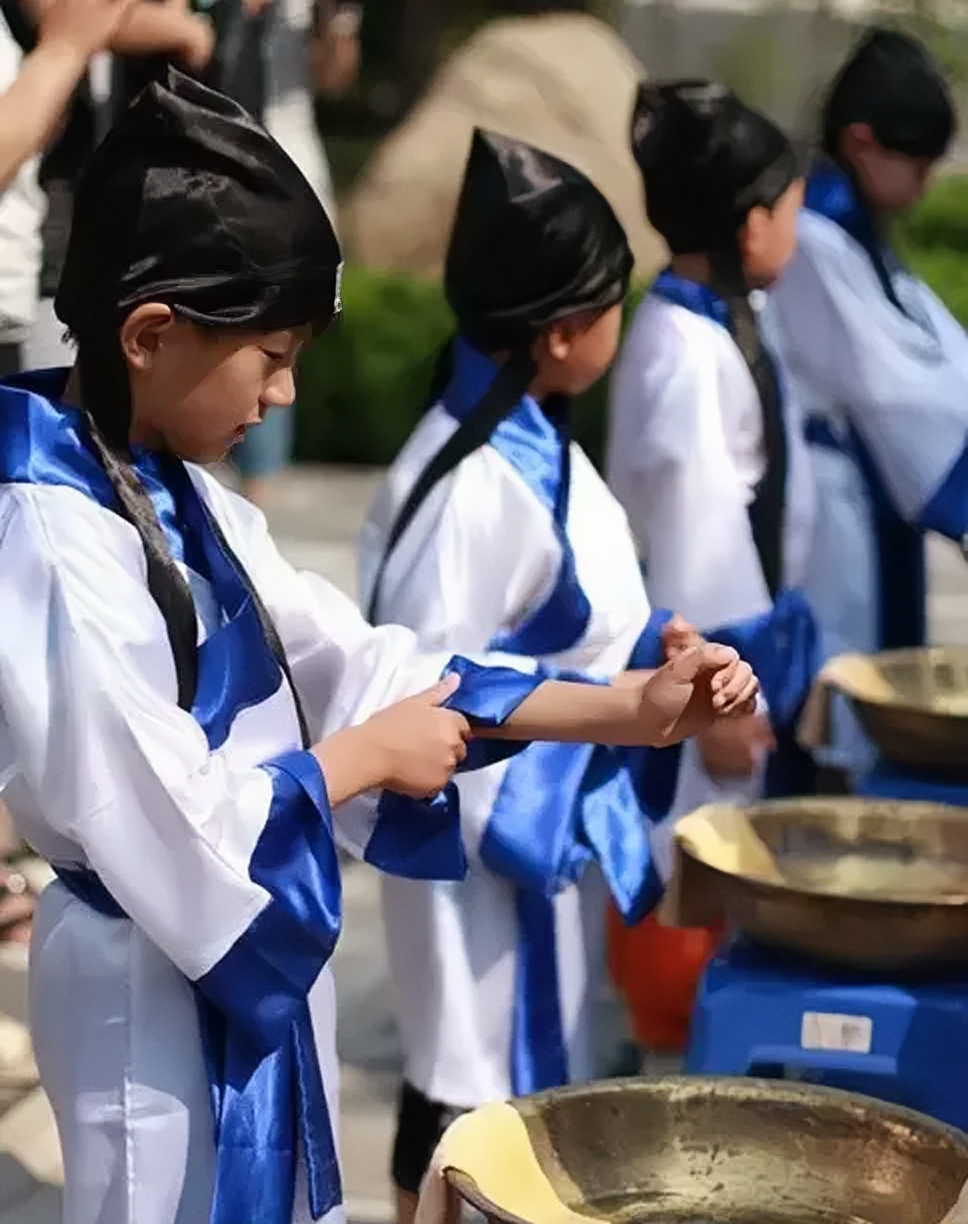 中国古代最注重“礼”,“入学礼”被视为人生的四大礼之一,与成人礼、婚礼、葬礼相提并论,并根据《礼记》和《弟子规》流传下来的“开学仪式”,历经千年未改,通常包括正衣冠、行拜师礼、净手净心、朱砂开智等内容。