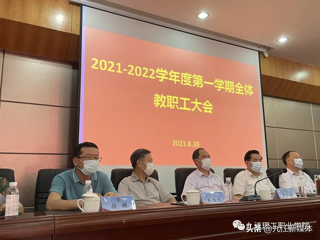 8月30日上午,九江理工职业学院2021-2022学年第一学期全体教职工大会在图书馆三楼会议室召开。校领导卢炳成、卢志鹏、朱法元、余海、张朋、乔利民、马妮、黄平、胡诏露、卢晓玲、周辉、卢俊燃等出席会议。大会由乔利民主持。