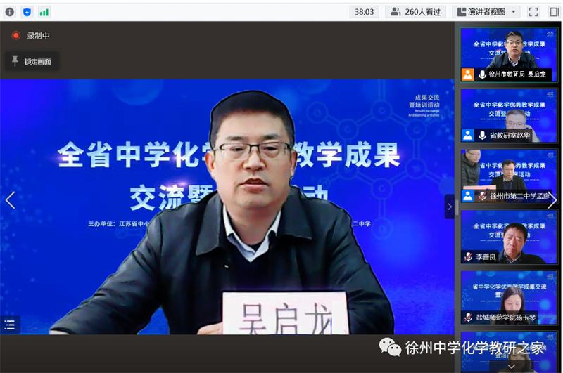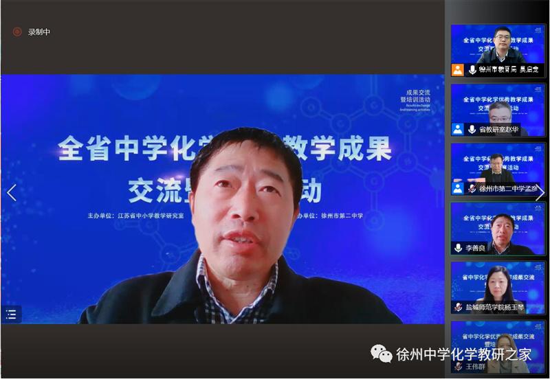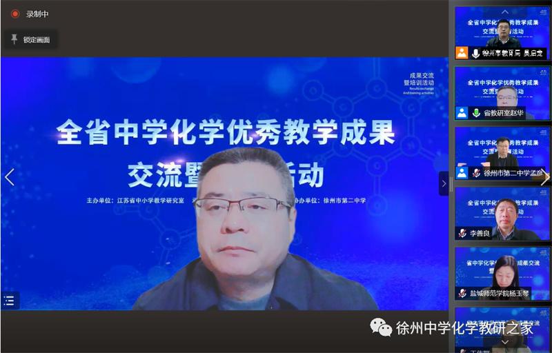 为进一步提升全省化学教师对学科育人的理解,增强教学成果的总结提炼能力,落实江苏省高质量教学体系,江苏省中学化学优秀教学成果交流暨培育活动于3月24日通过腾讯会议“网络研讨会”线上举行。本次活动由江苏省中小学教学研究室主办、徐州市教育科学研究院承办、徐州市第二中学协办。全省各地中学化学教师近3000人在线参加了研讨学习。