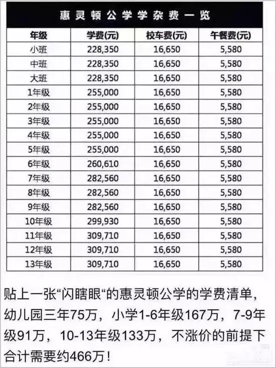 尽管该表中的学杂费与真实情况有所出入,但对于一年20多万元的学费,还是让不少工薪阶层望而却步,也因此引得家长的热议。