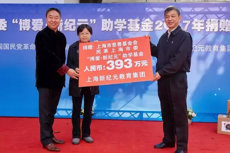 2017年11月,上海新纪元教育集团向上海市慈善基金会、民革上海市委会“博爱·新纪元”助学基金捐赠393万元,用于帮助品学兼优的贵州纳雍县家庭经济困难学生完成高中学业。民革中央副主席、民革上海市委会主委高小玫(中)出席捐赠仪式。