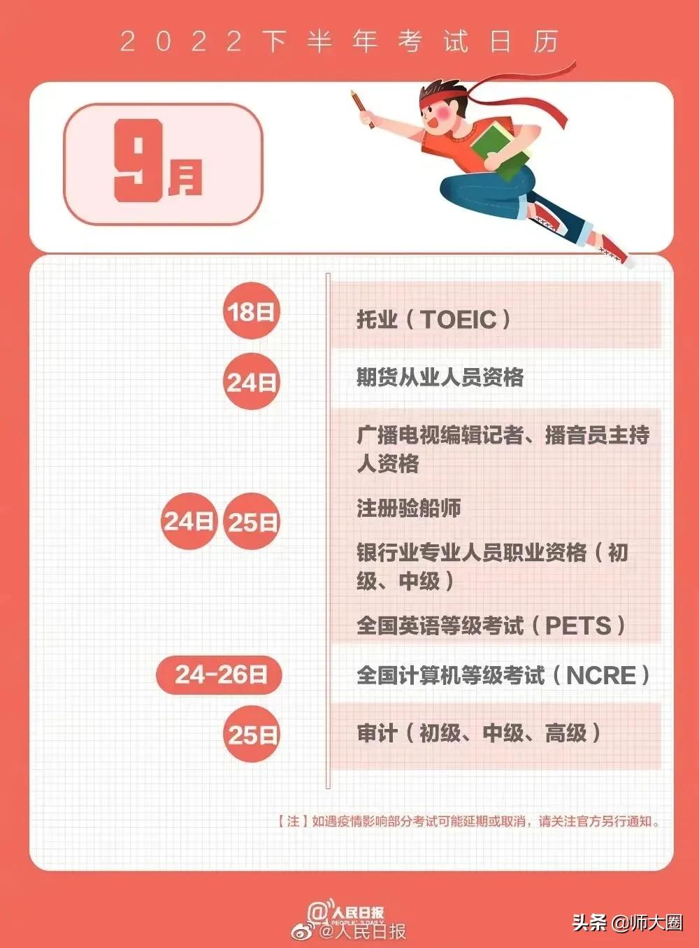 #打卡挑战局#莘莘学子,寒窗苦读。我们的学业水平,职业技能水平需要各种技能证书进行初步评判,然后再在职场中根据职场能力进行最终评判。接下来让我们了解一下下半年的考试时间安排。