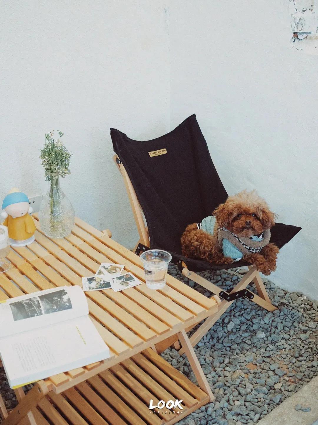 室外区域装饰成露营风,自成一片空间,如果带着宠物可以来这里休息。