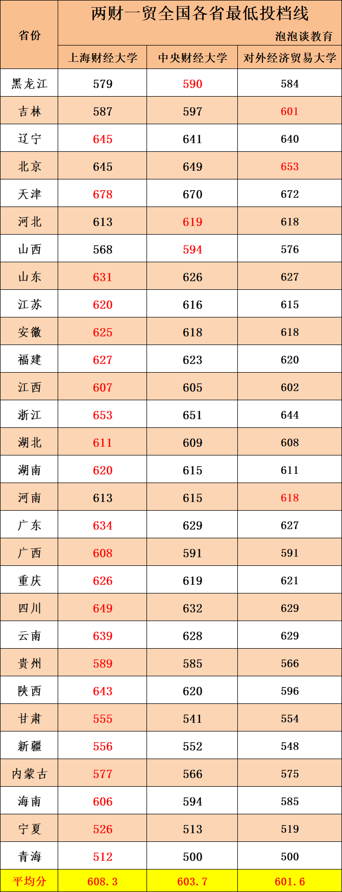 财经类的高校一直都是非常受追捧的,那么两财一贸三所高校今年在全国各省的最低投档线情况如何呢?