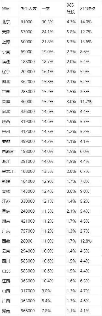 之所以如此,大家看看河南、河北、山东等高考大省的录取率就知道了。