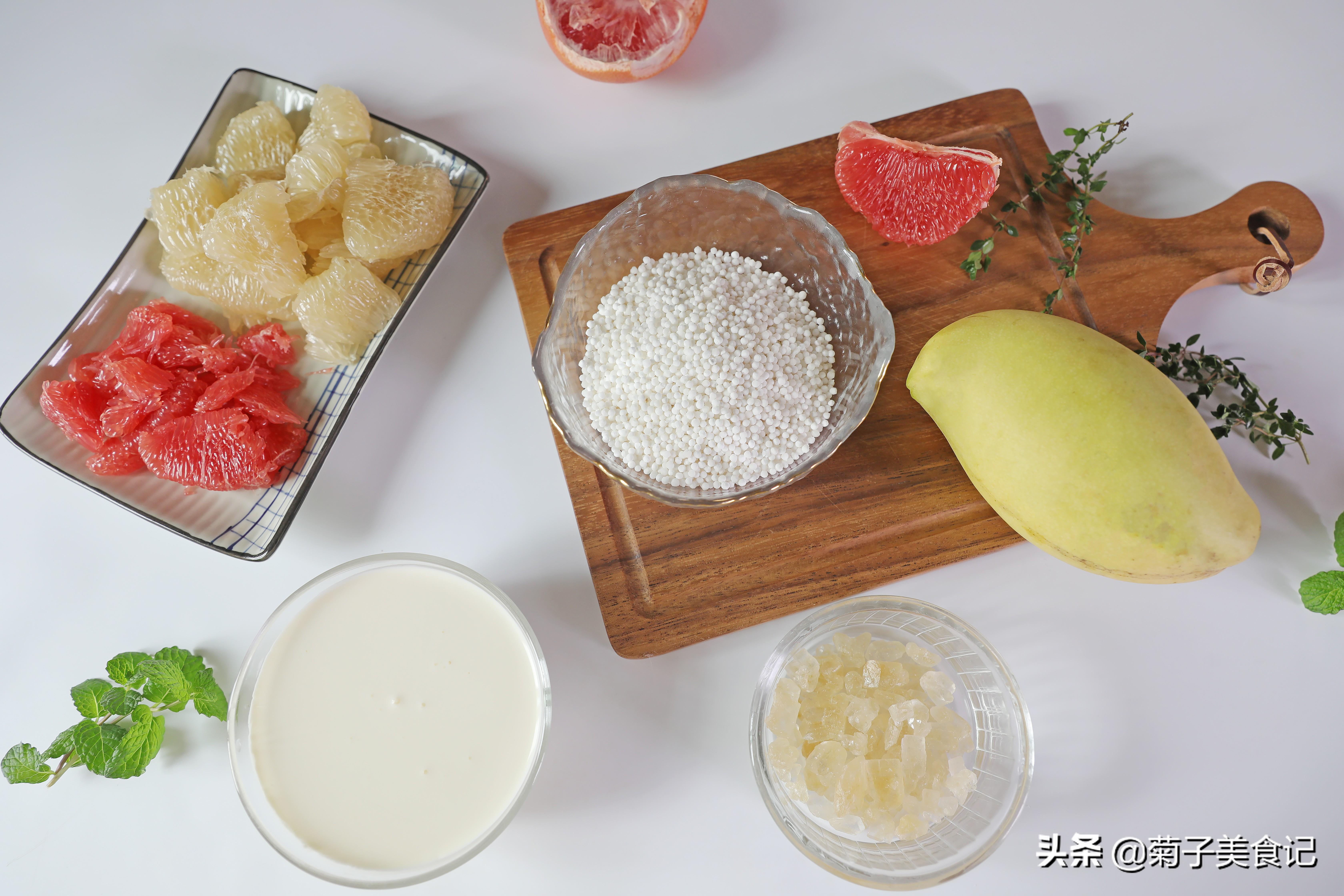 冰糖 35g / 淡奶油 150g / 芒果 200g / 西米 100g / 蜜柚 适量 / 西柚 适量