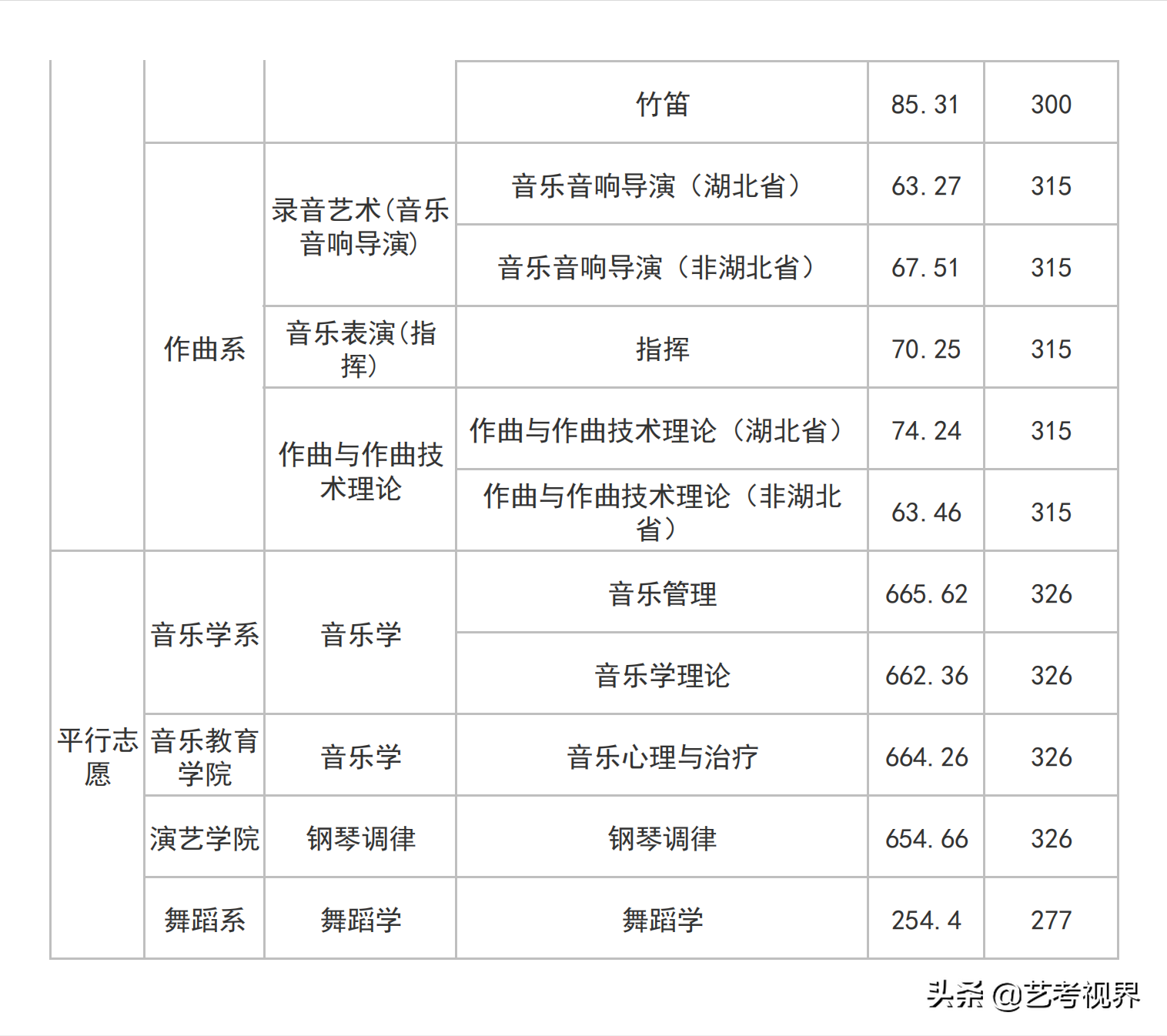 数据来源武汉音乐学院官网,艺考视界进行整理,仅供参考。有表述错误,请在评论区留言指正,谢谢!