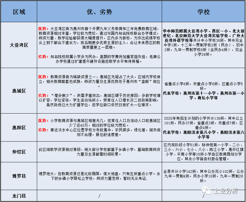 优势:小学教育资源与惠城区相差无几,但常住人口及流动人口较惠城区少了近40万,相对的学位较为宽松。
