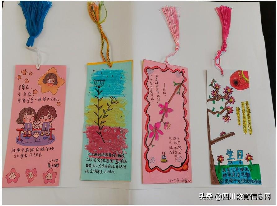 一幅幅图文并茂的手抄报,一张张精美的贺卡、书签,一件件各具特色的创意作品,一篇篇构思新颖的佳作,抒发着同学们对实校的热爱和祝福。