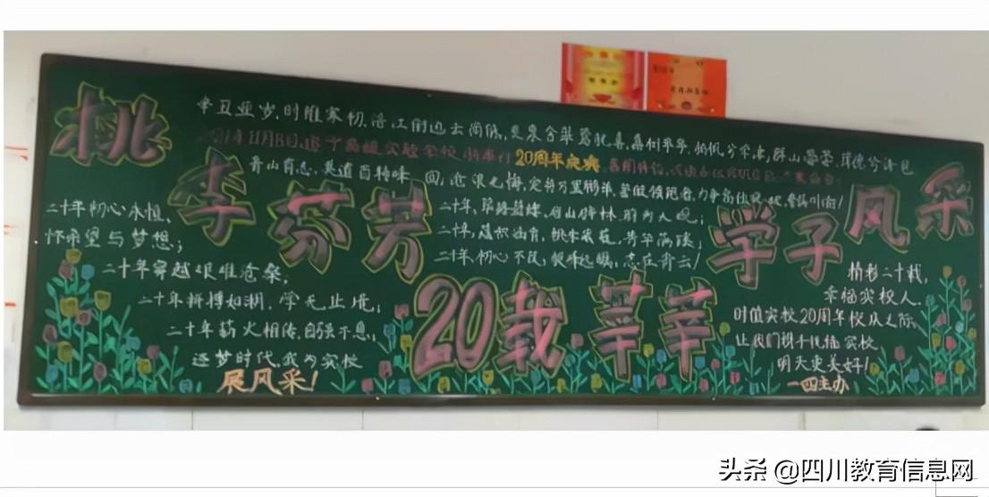 各班紧紧围绕校庆主题,对版面进行了设计、编排、书写、绘画等一系列工作,将精美、喜庆、有特色的校庆黑板报展现出来,为校园文化增添了一道亮丽的风景。