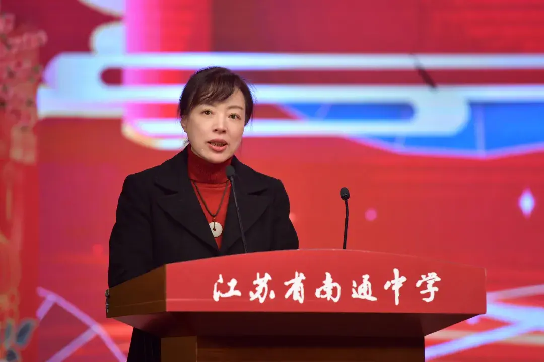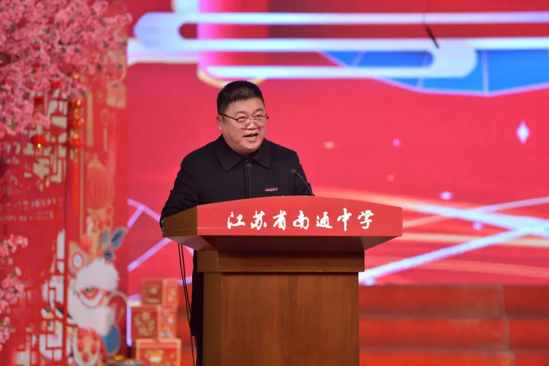 典礼开始,鞠九兵校长发表了热情洋溢的新年致辞。鞠校长代表学校向一年来辛勤耕耘、无私奉献、屡创佳绩的全校教职员工致以最崇高的敬意,他回顾了2021年南通中学取得的各类佳绩,站在新百年的起点上,鞠校长勉励全体通中人要秉承正道直行、积健为雄的优良传统,奋进新征程,迎接新辉煌。
