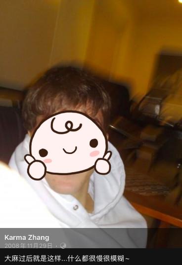 2008年11月29日的时候,张恒晒出了一张外国男生的正面照,并在下面配文“大麻过后就是这样...什么都很慢很模糊。”