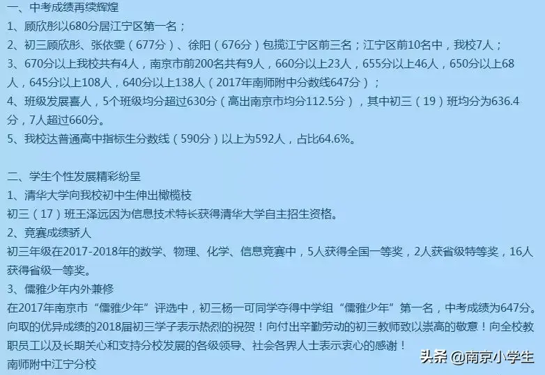 南师附中江宁分校2018年中考通告:
